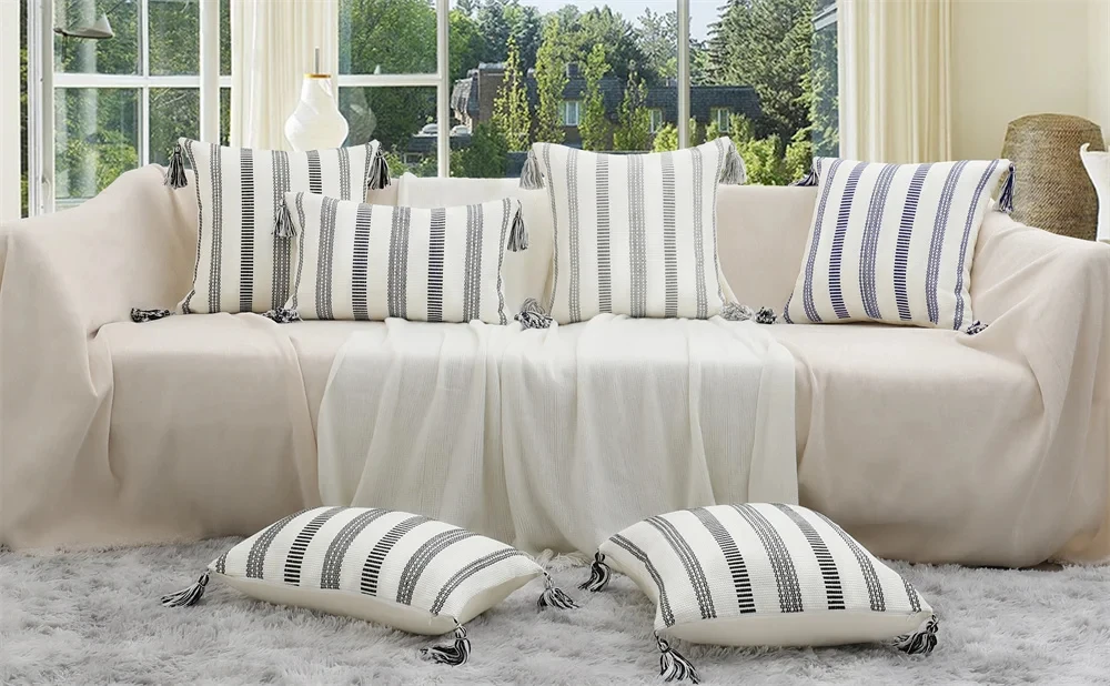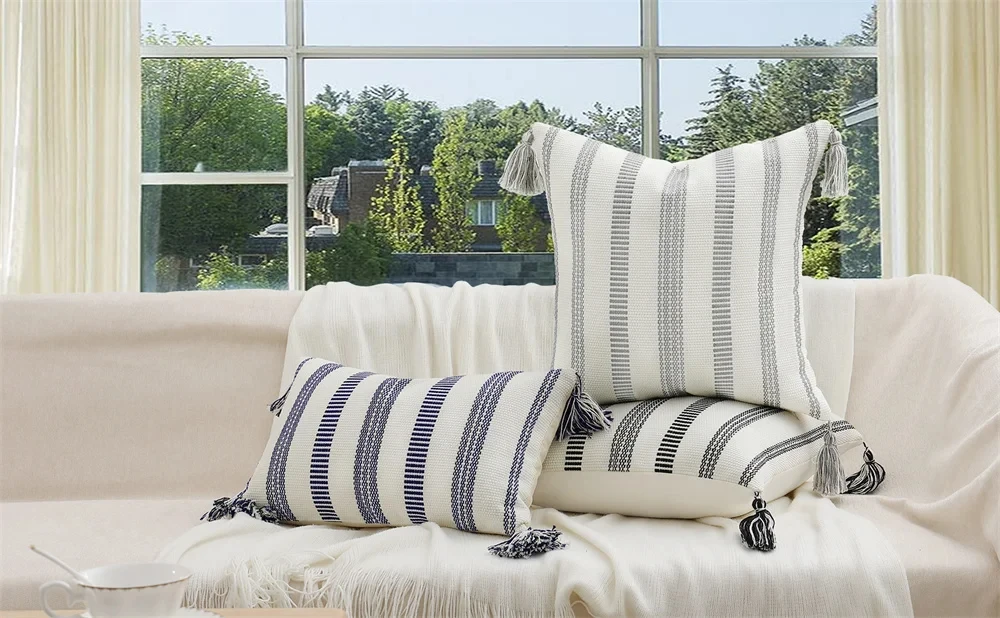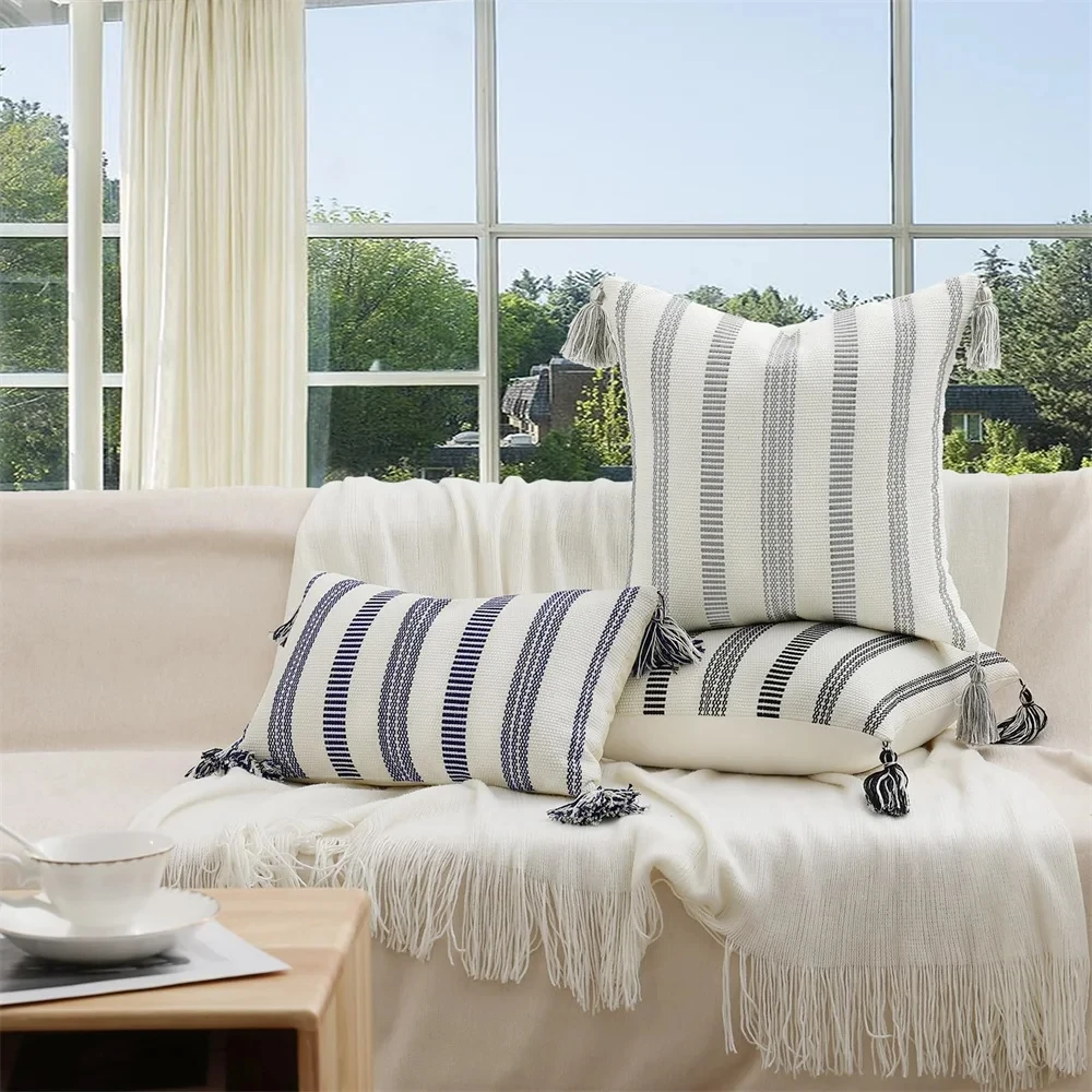 Kitinjoy Cotton Pillow Cover 45x45cm Striped Cushion Cover Decor Pillowcase For Sofa Car Home Luxury Throw Pillow Case 50x50