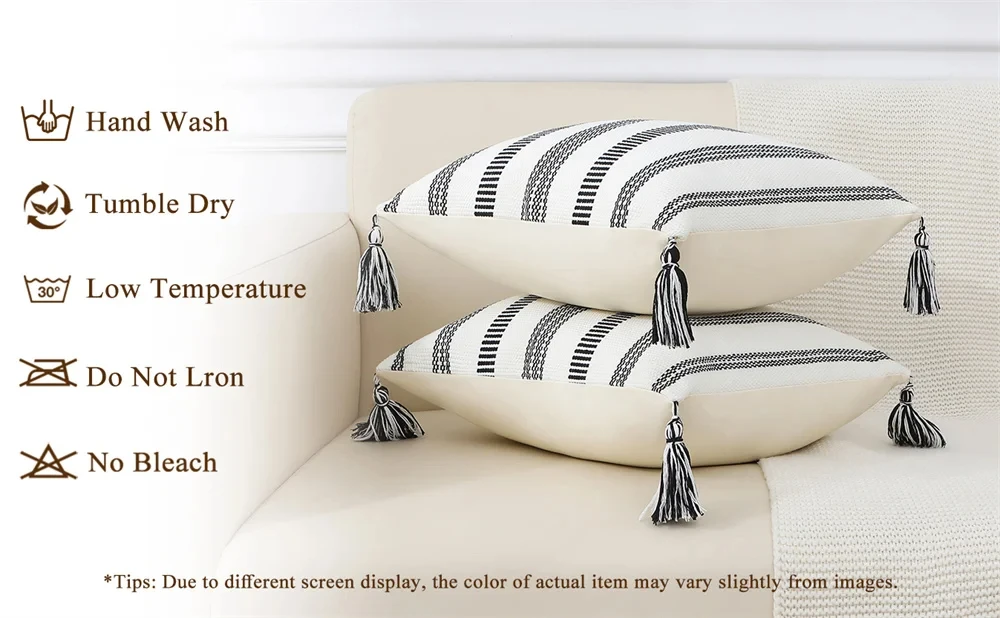 Simply hand wash this pillow cover, you can also machine wash cold separately, gentle cycle and tumble dry low, No Bleach